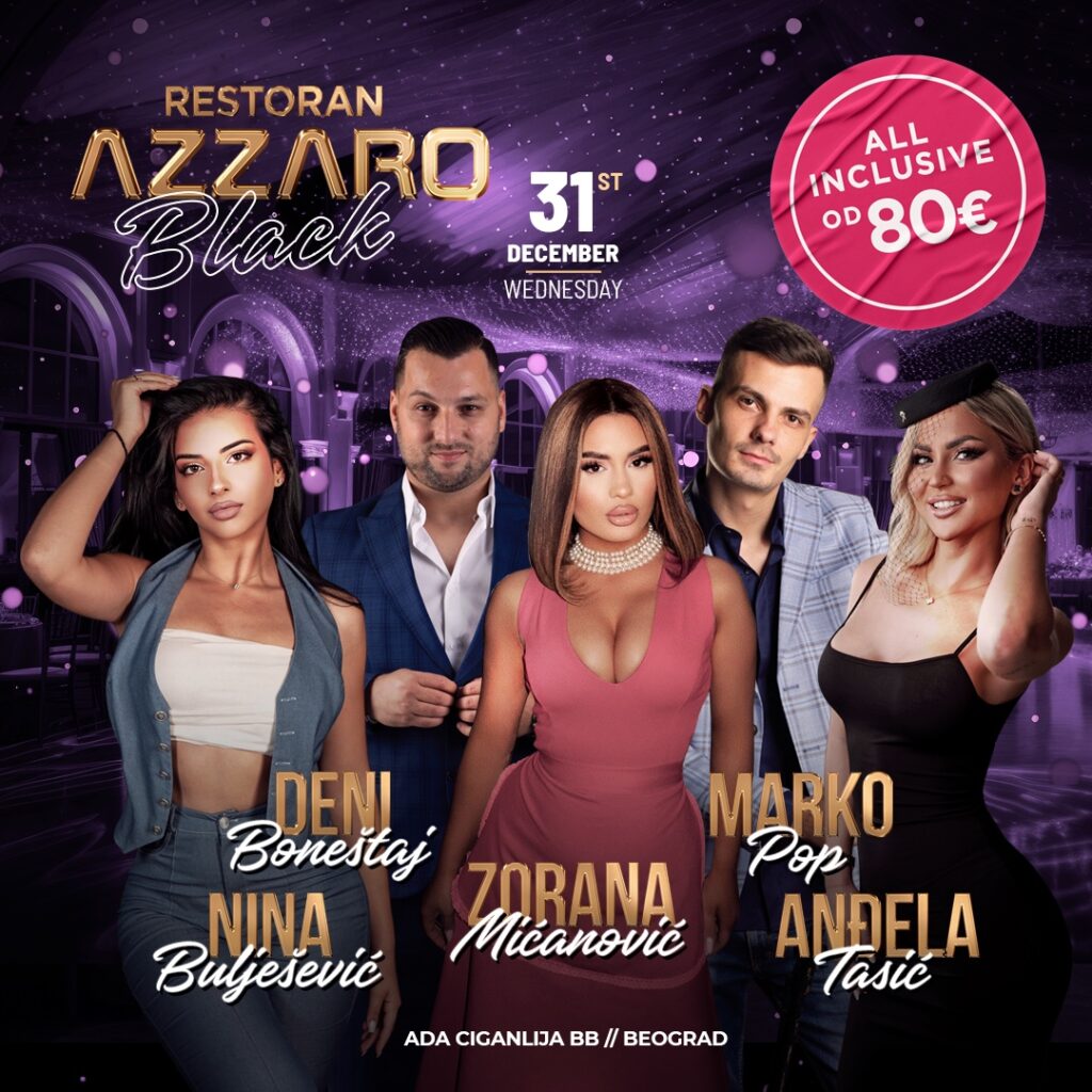 All inclusive ponuda – najluksuzniji specijaliteti sve vrste domaćih i stranih pića.Cene već od 90€.Pozovite i rezervišite Vaše mesto! Doček je za Vas spremio vrhunske izvođače.